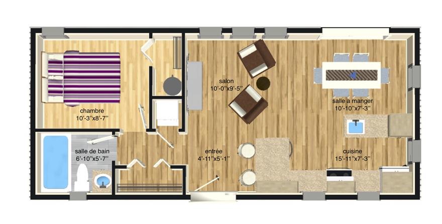 Cette mini-maison est très coquette et elle offre tout le cachet d'un style contemporain, ainsi que tous les avantages pour un couple ou une personne seule.